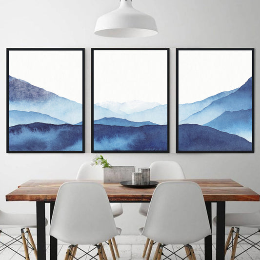 Abstract Watercolor Print with Blue Mountain Landscape | Navy Blue Art