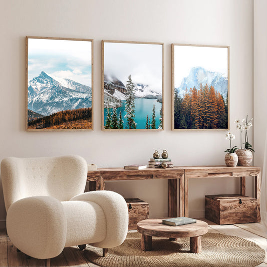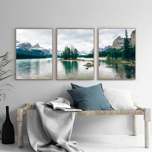 Spirit Island on Maligne Lake Wall Art | Nordic Mountain Lake Triptych