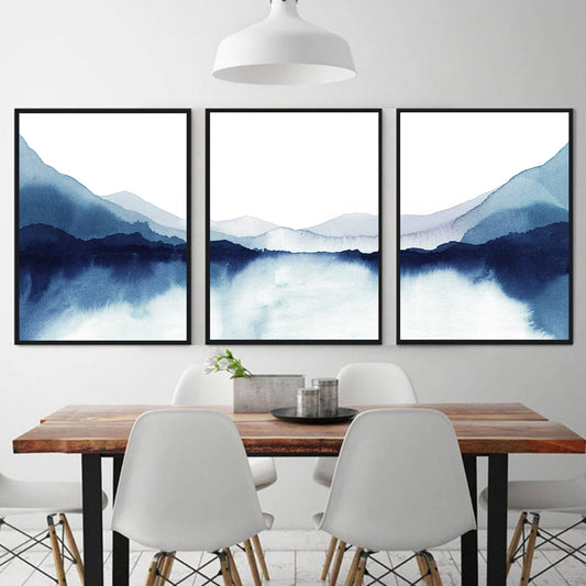 Mountain Lake Triptych Art in Blue | Abstract Watercolor Wall Art Set