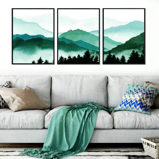 Emerald Green Mountain Triptych | Watercolor Mountain Landscape Set