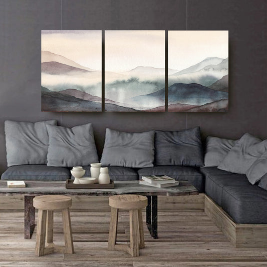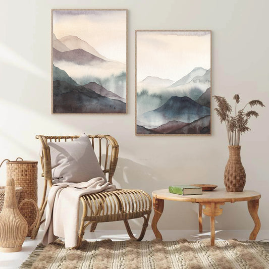 Foggy Mountains Print | Trendy Watercolor Wall Art Set with Mountains
