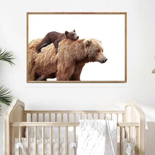 Bär mit Jungem Druck fürs Kinderzimmer | Leinwandbild mit zwei Bären fürs Kinderzimmer