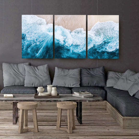 Küsten-Wandbild, 3-teilig, mit Meeresstrand | Luftbild einer Meereswelle