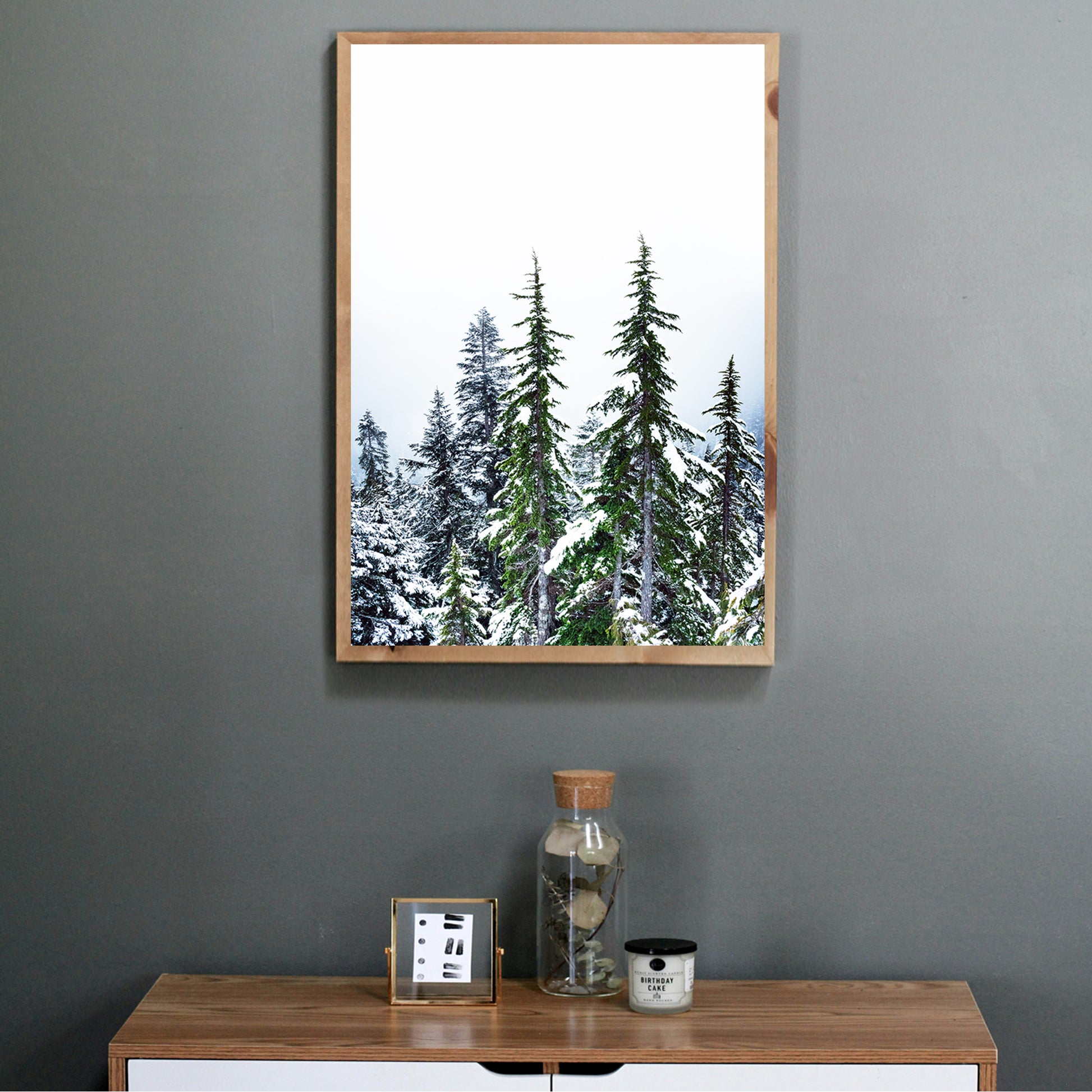 A snow-covered pine forest is a great way to create a Christmas mood in your living room. Choose from an unframed print, a stretched canvas print, or a print in a high-quality wooden frame. 283.