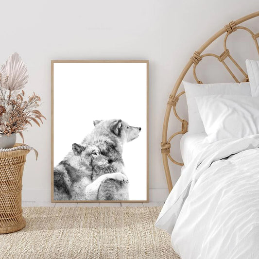 Décoration murale représentant un loup | Impression sur toile ou affiche encadrée représentant une jolie famille de loups