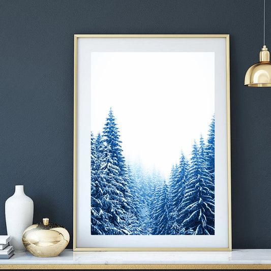 Blue Pine Tree Forest with Snow Large Print or Canvas | Christmas Forest Wall Art