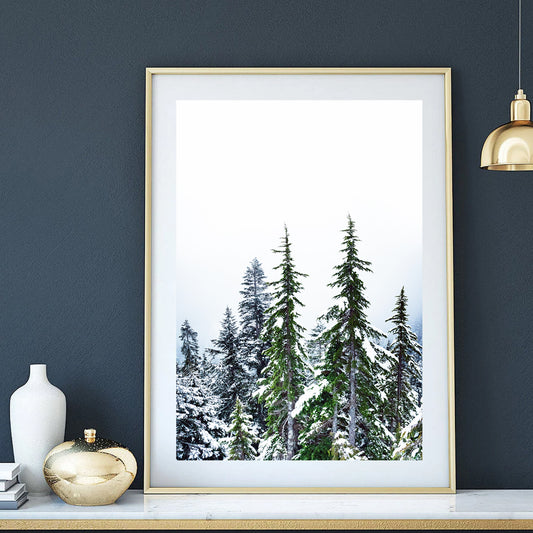 Winter Forest Wall Art | Green Pine Tree Forest with Snow Large Poster