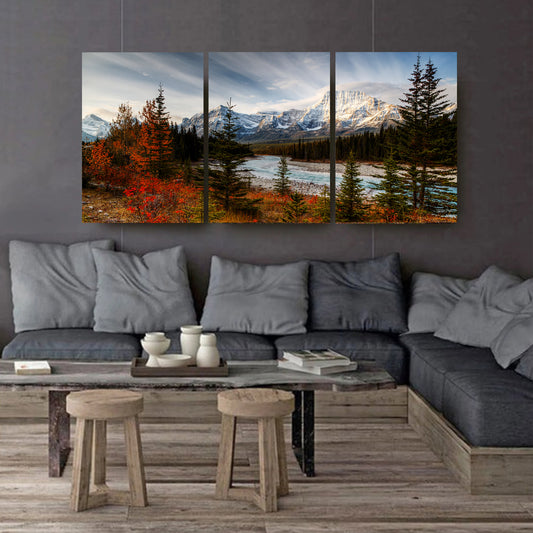 Paysage d'automne avec rivière de montagne, 3 pièces | Triptyque d'automne