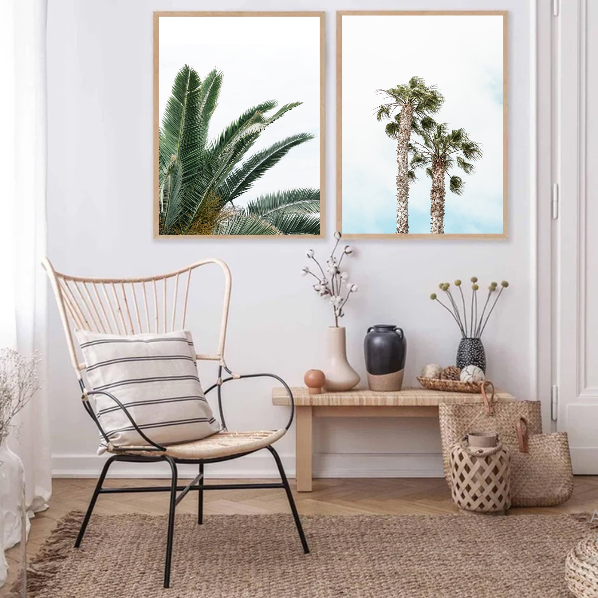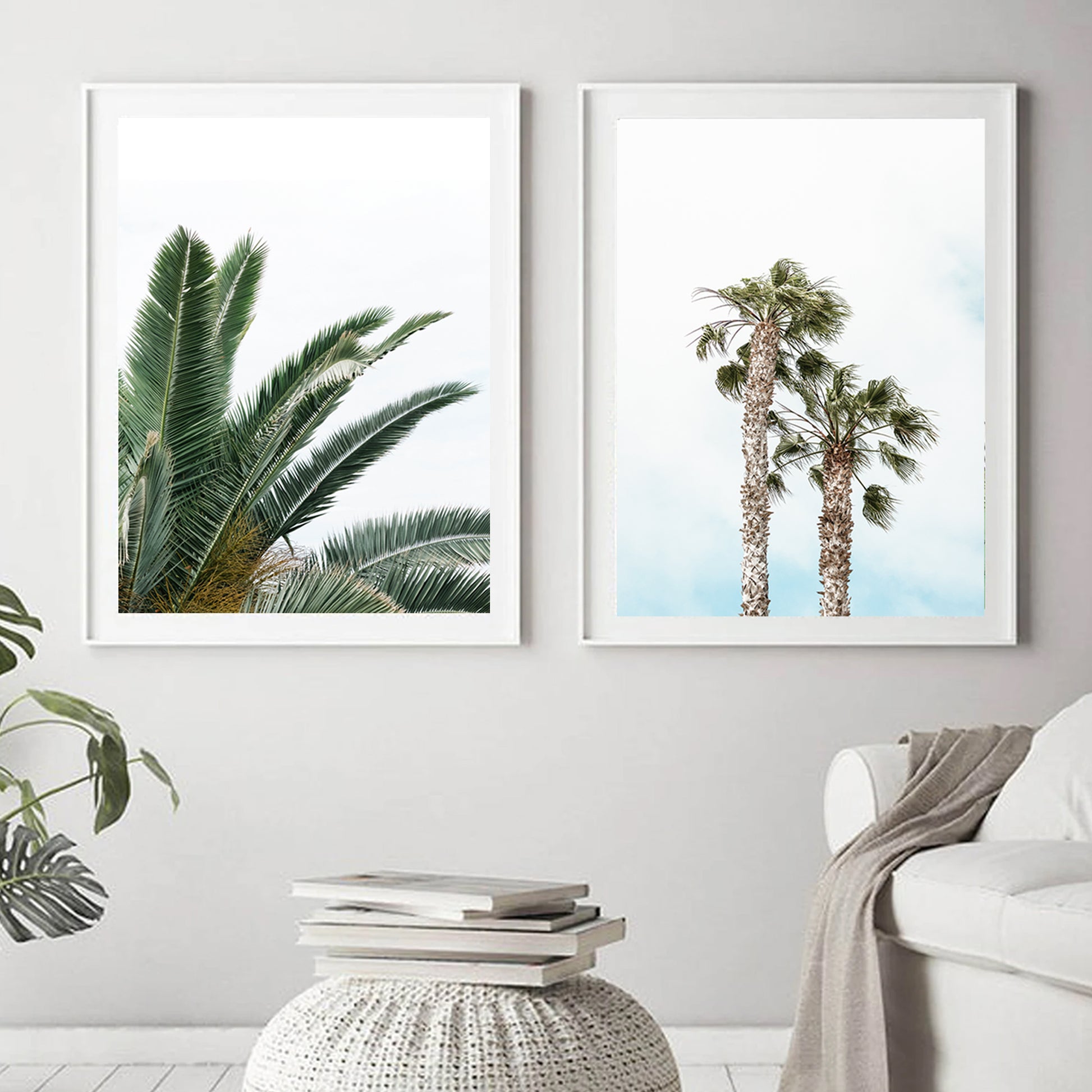 Palm Tree Poster Set of 2 Piece, Tropical Plant Leaves, Beach Wall Art