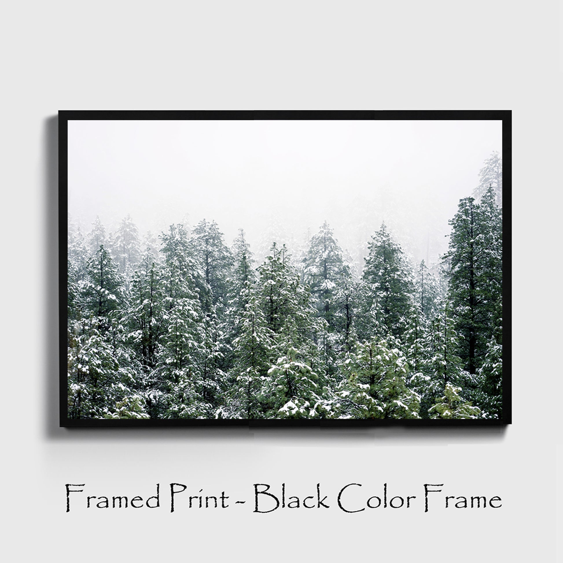 Winter Forest Wall Art | Green Pine Tree Forest with Snow Large Poster
