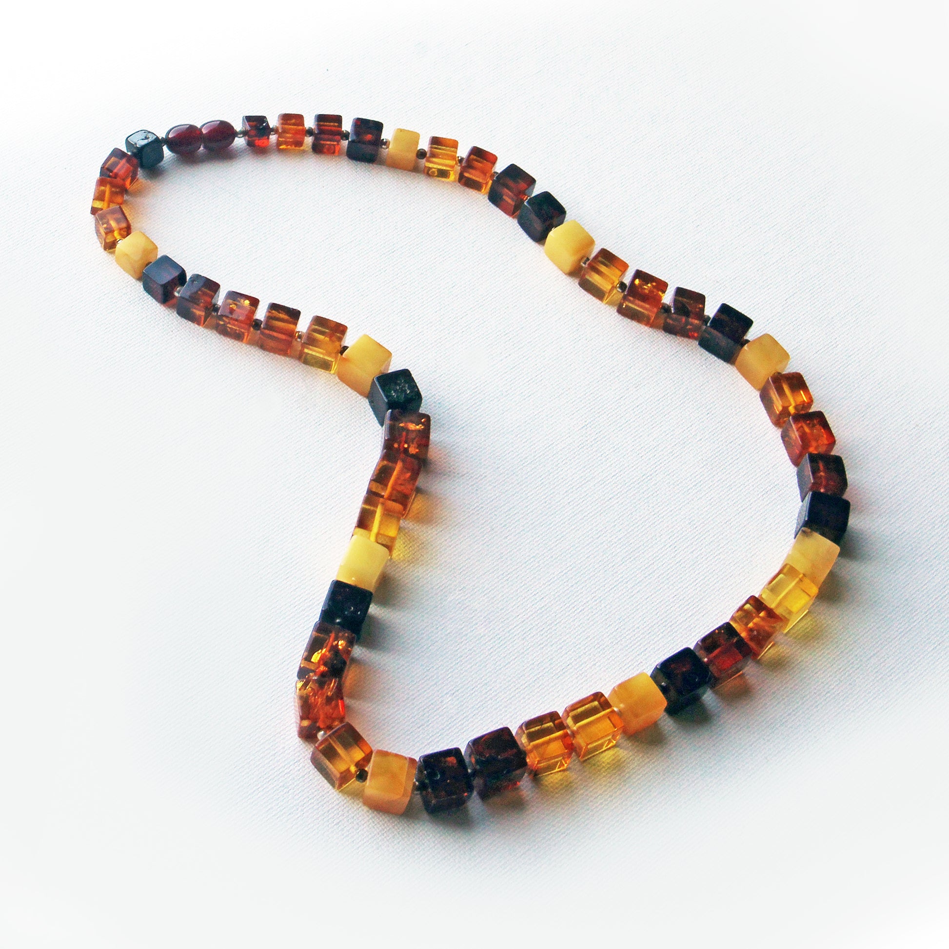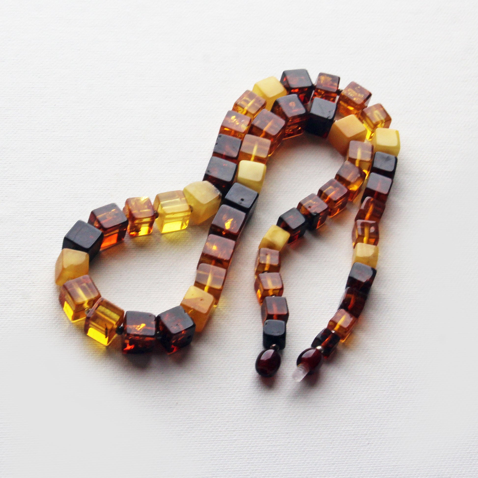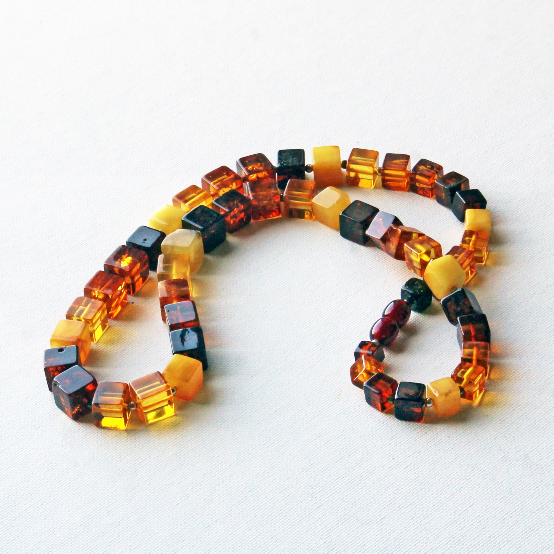 Baltic Amber Necklace, Gemstone Necklace, Amber Cubic Beads Necklace, Colorful Amber Stone Beads, Handmade Amber Beads, Unique Amber Jewelry. #0243.