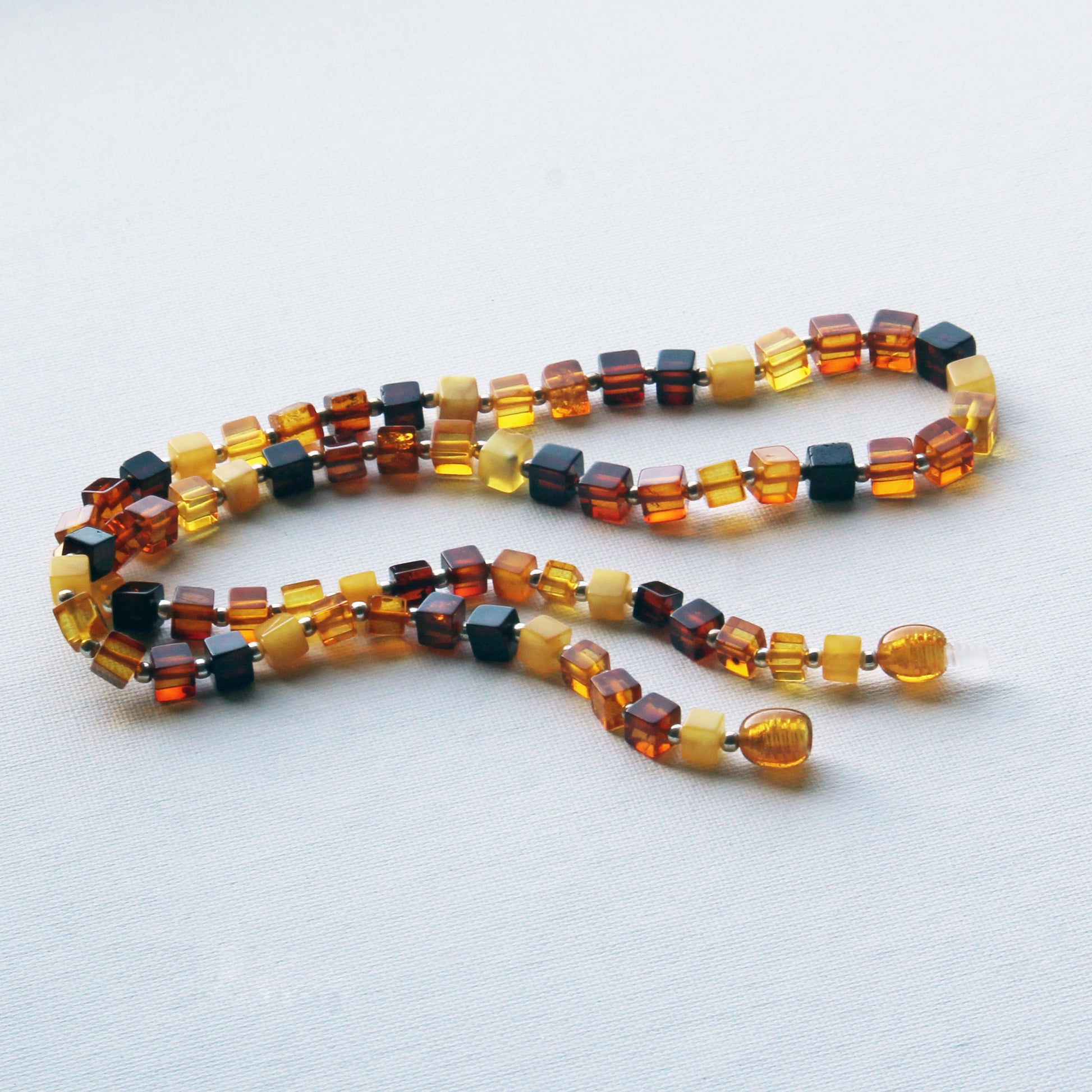 Baltic Amber Necklace, Gemstone Necklace, Amber Cubic Beads Necklace, Colorful Amber Stone Beads, Handmade Amber Beads, Unique Amber Jewelry.