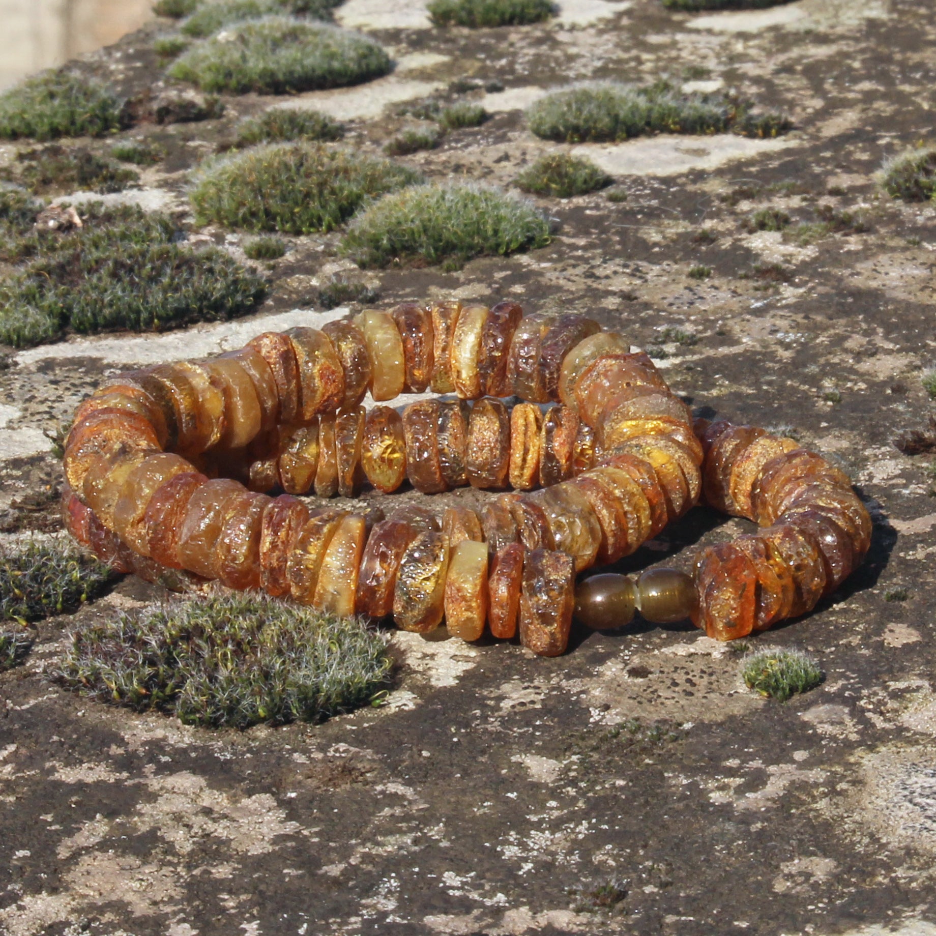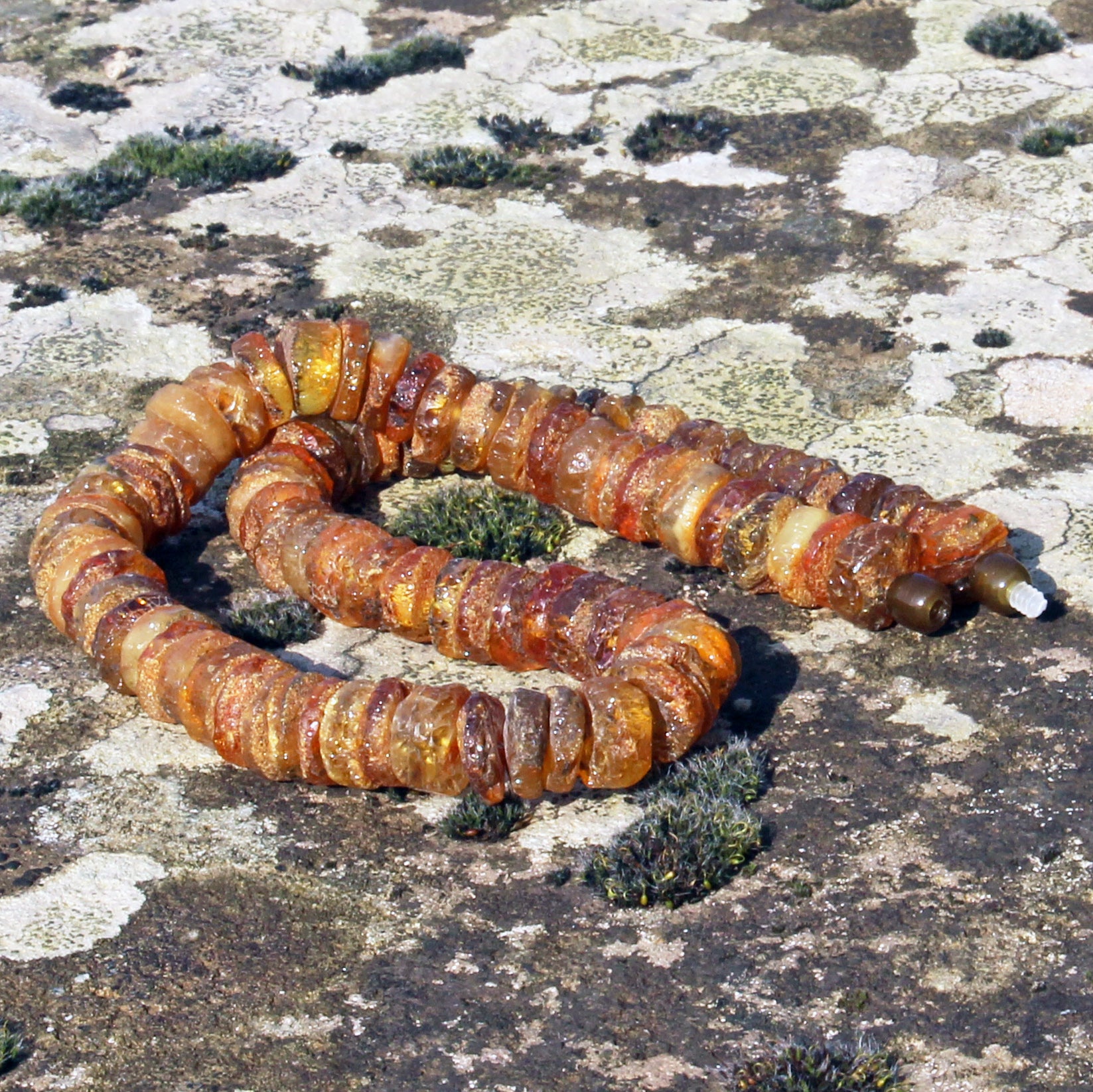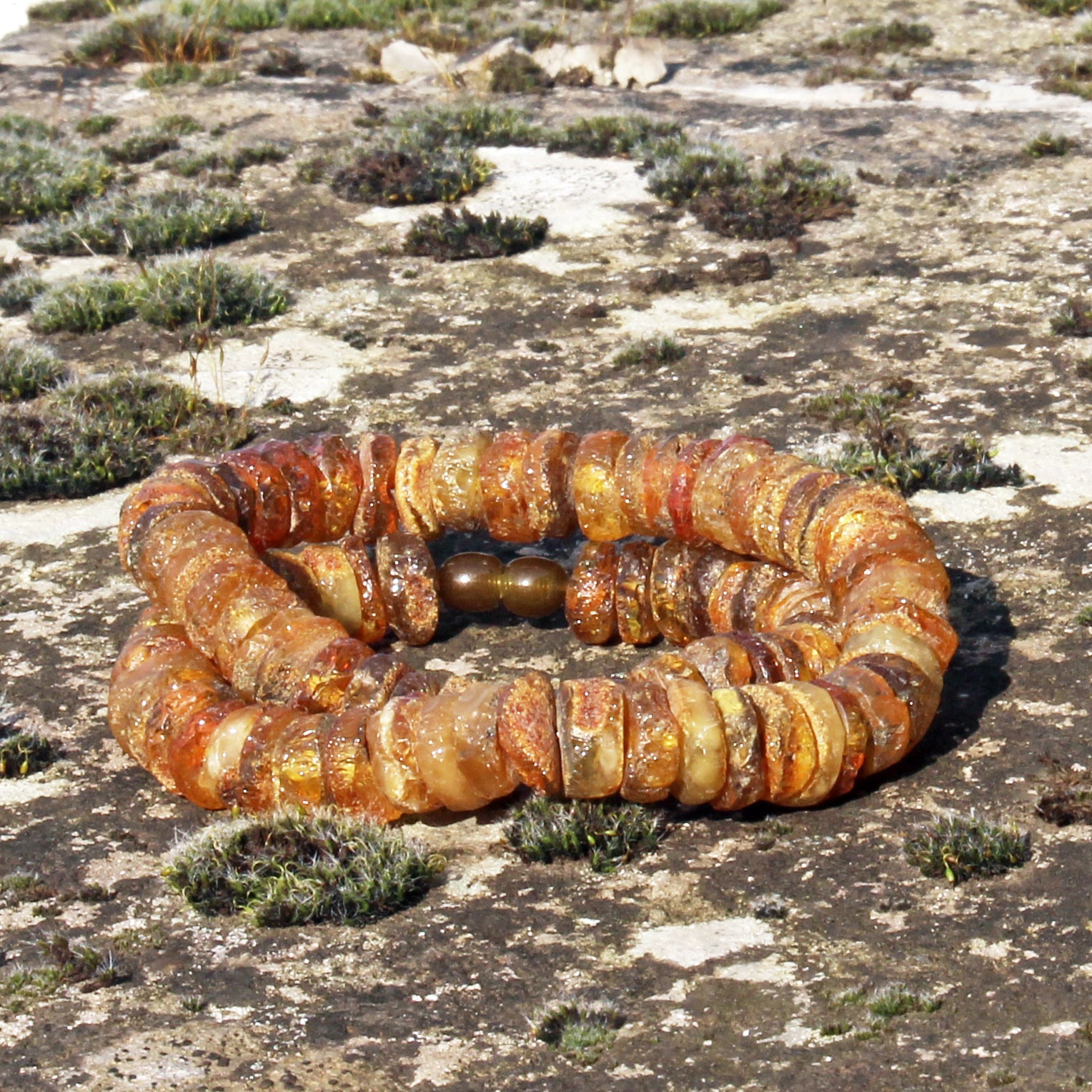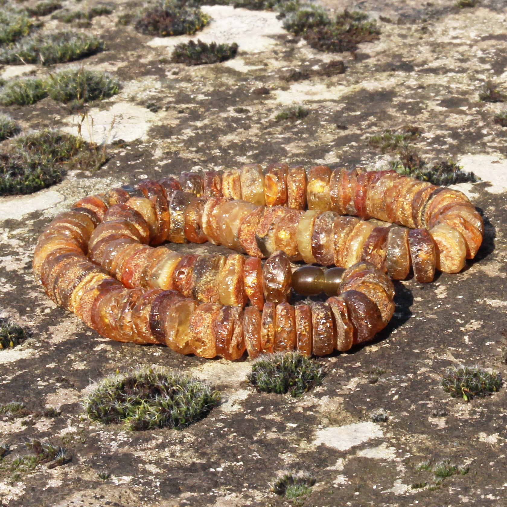 Unpolished amber necklace. This jewelry is made from pieces of raw natural Baltic amber. In addition to its fashionable appearance, it has healing properties due to the friction of unpolished raw amber surfaces on the skin, whose properties have been known since ancient times. #0226.